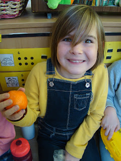 Heerlijke fruitsalade met groene en blauwe druiven, bananen, peer, appel, gele en groene kiwi, blauwe bessen, meloen, mandarijn en ananas. Bedankt alle ouders, we hebben heerlijk gesmuld!